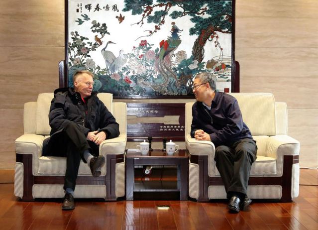 Lyu Jian meets with Professor Le Clézio. (Photo: She Zhijun)