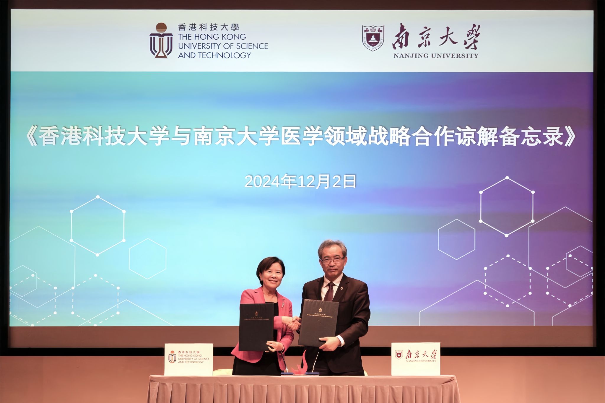 On December 2, during the inaugural Global University Presidents & Leaders Summit 2024, Tan Zhemin, President of Nanjing University and Academician of the Chinese Academy of Sciences, on behalf of Nanjing University, signed the Memorandum of Understanding on Strategic Cooperation in the medical field between NJU and the Hong Kong University of Science and Technology (HKUST) with Nancy Y. IP, President of HKUST, further deepening cooperation in scientific research between the two sides.