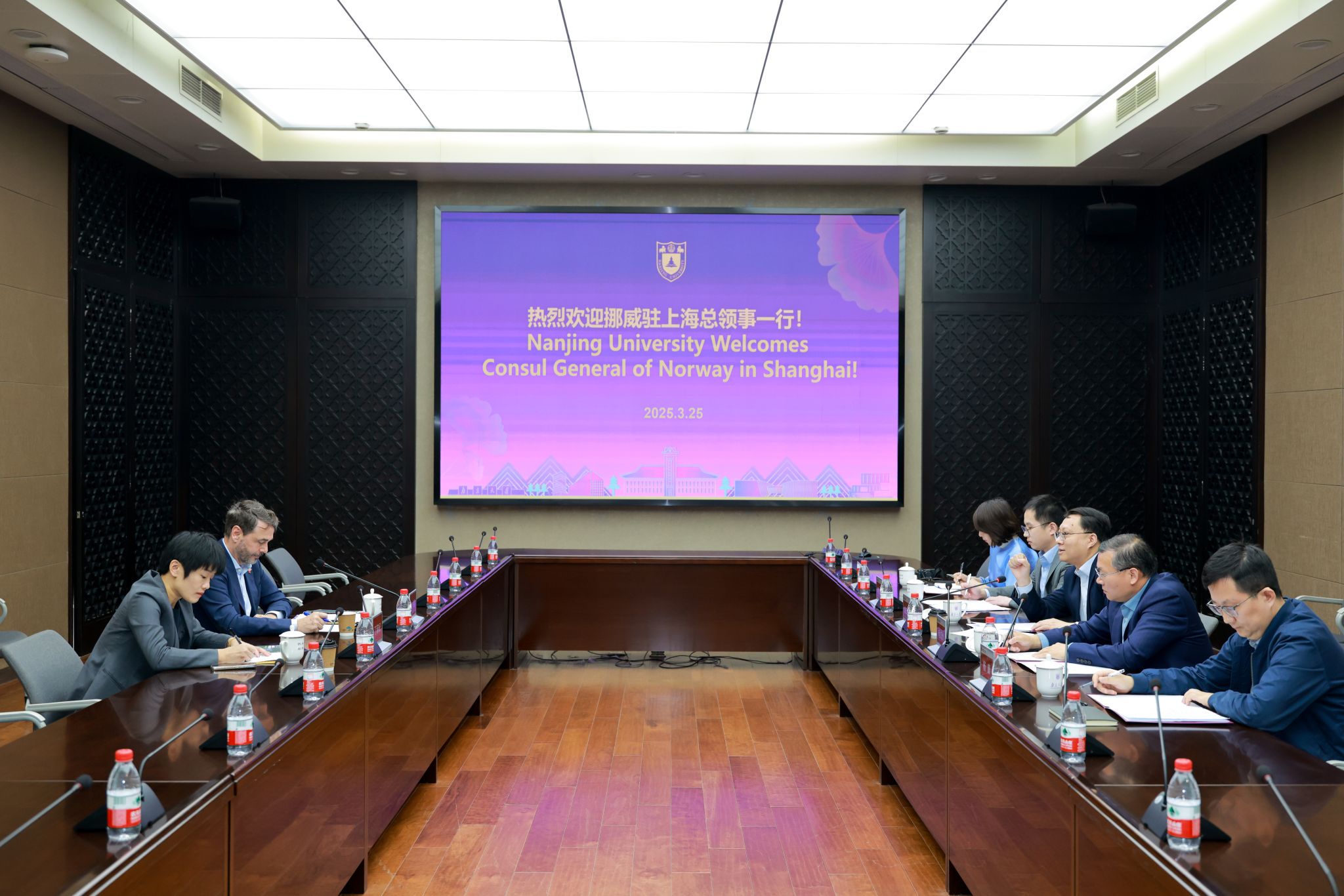 On the morning of March 25, 2025, Chen Yunsong, Deputy Chair of NJU CPC Council met with Tobias F. Svenningsen, Norwegian Consul General in Shanghai, and his delegation on Xianlin campus. Both parties engaged in a deep discussion on enhancing Sino-Norwegian cooperation in education, culture, and scientific research.