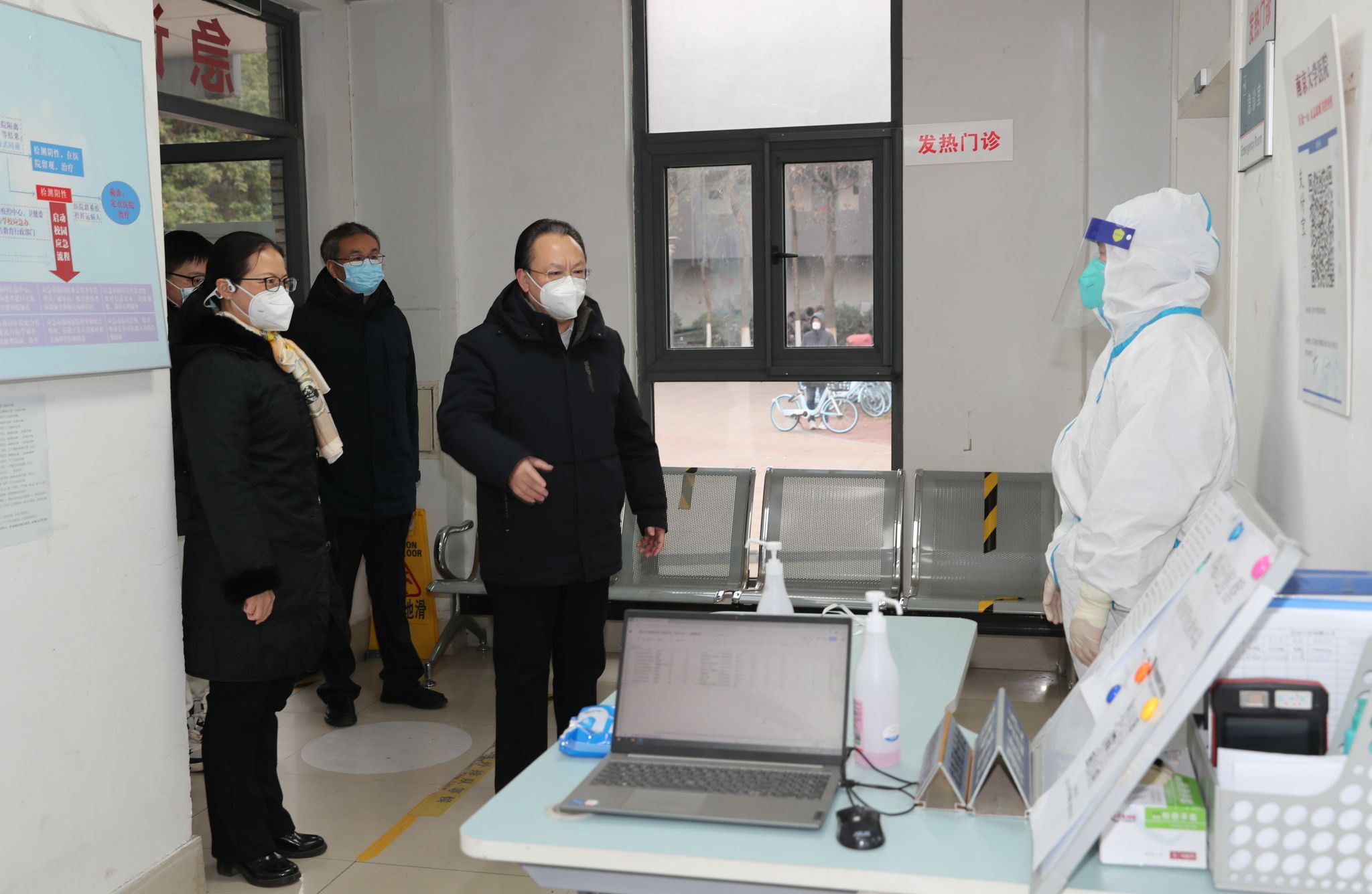 At the university hospital, Tan visited the medical staff on duty and carefully inspected the operation of pre-examination clinics, nucleic acid sampling booths, and telephone consultations. “You have made great contributions to safeguarding everyone’s health,” Tan expressed high praise and gratitude to the medical staff for their hard work, especially for their important role during the period of national entrance examination for graduate students, and extended New Year’s greetings to them on behalf of the university leadership.