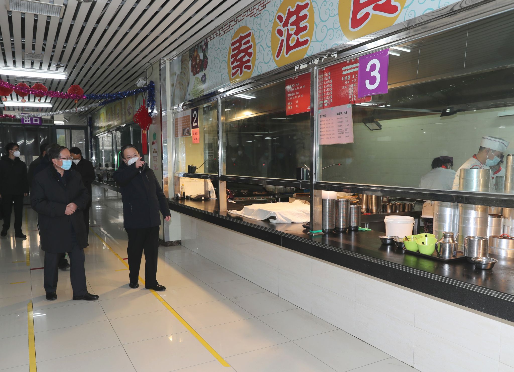 At the 11th Student Canteen, Tan listened to the staff’s introduction of the current operation of the canteen and expressed his greetings. He pointed out that in the face of the pandemic, it is good to appropriately increase relatively light dishes, reasonably arrange the working hours of employees, and equip microwave ovens and other heating equipment to ensure that teachers and students can enjoy hot meals.