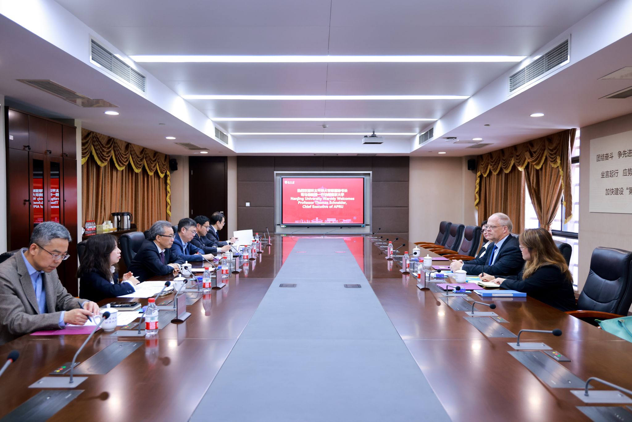 Tan Zhemin extended a warm welcome to Professor Schneider and his delegation, expressing gratitude for APRU's longstanding support to Nanjing University. He reviewed the cooperation between Nanjing University and APRU, highlighting the mutual benefits, and briefly introduced Nanjing University's development and achievements. He emphasized Nanjing University's active engagement in international exchanges and cooperation in global issues such as life and health, climate change, artificial intelligence, and sustainable development, contributing wisdom to solving common challenges faced by humanity. He expressed hope for further substantive cooperation with APRU in talent cultivation, scientific research, and other areas to make more contributions.