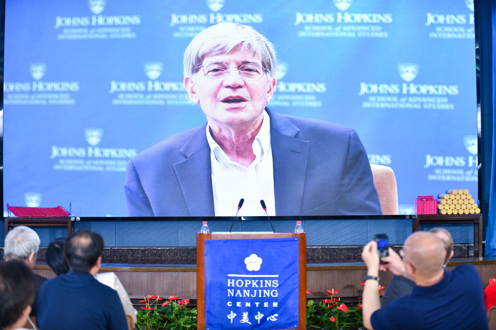 SAIS Dean Jim Steinberg addresses HNC in pre-recorded remarks.