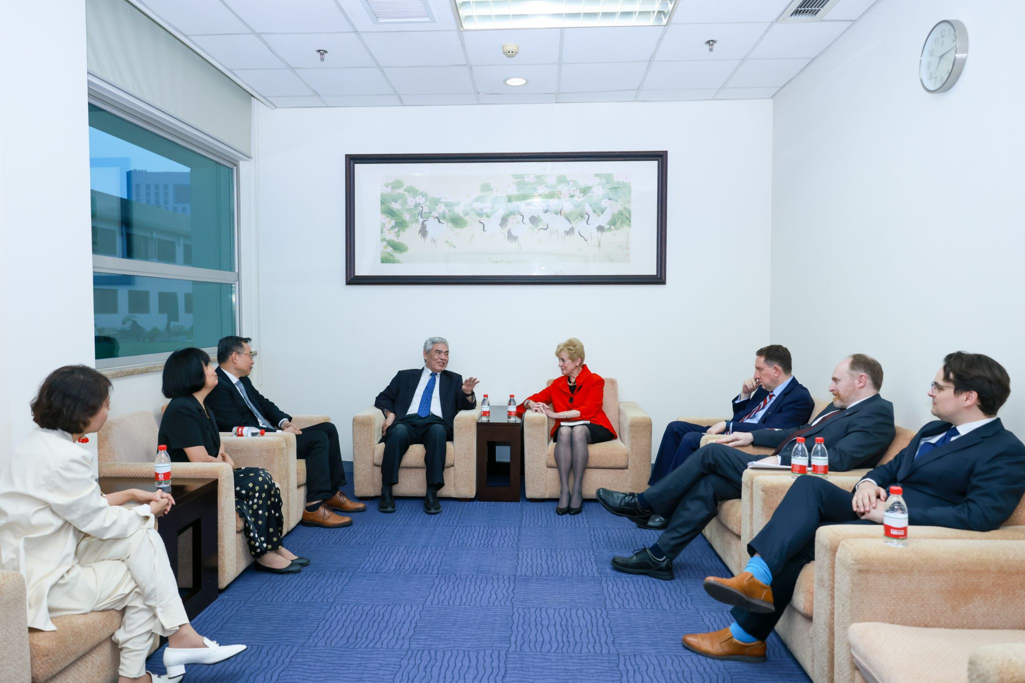 Before the ceremony, Prof. Hong Yinxing presented his latest book An Outline of Chinese Path to Modernization as a gift to Dr. McGovern and Jim Heller.