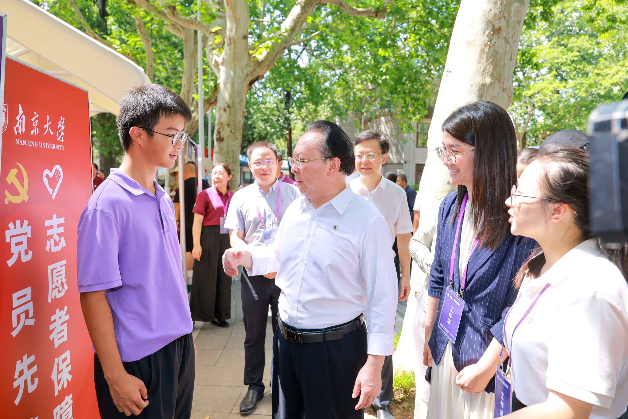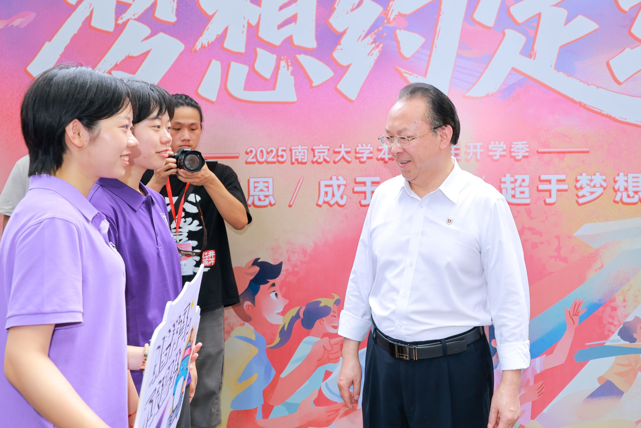 8月30日,凯发k8官网党委书记、中国科学院院士谭铁牛来到鼓楼校区迎新现场,看望初入校园的2025级本科新生,走访慰问忙碌于迎新一线的师生员工与志愿者。