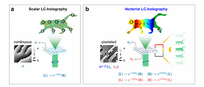 图1. 液晶标量全息和液晶矢量全息示意图