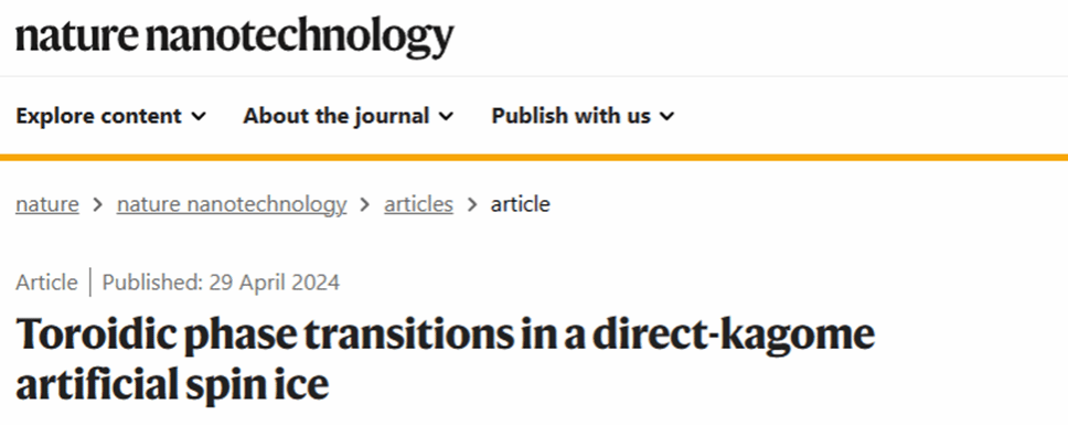 成果论文:Yue, WC., Yuan, Z., Huang, P. et al. Toroidic phase transitions in a direct-kagome artificial spin ice. Nat. Nanotechnol. (2024). https://doi.org/10.1038/s41565-024-01666-6