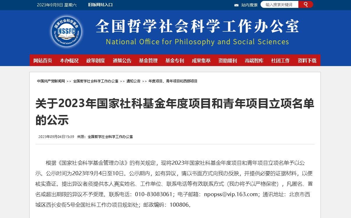 全国哲学社会科学工作办公室、全国教育科学规划领导小组办公室网站近期分别公示、公布了2023年度国家社科基金项目(年度项目、艺术学和教育学项目)拟立项名单,我校国家社科基金重点项目拟立项数为10项,重点项目拟立项数创近年来新高,与中国人民大学并列全国第一。