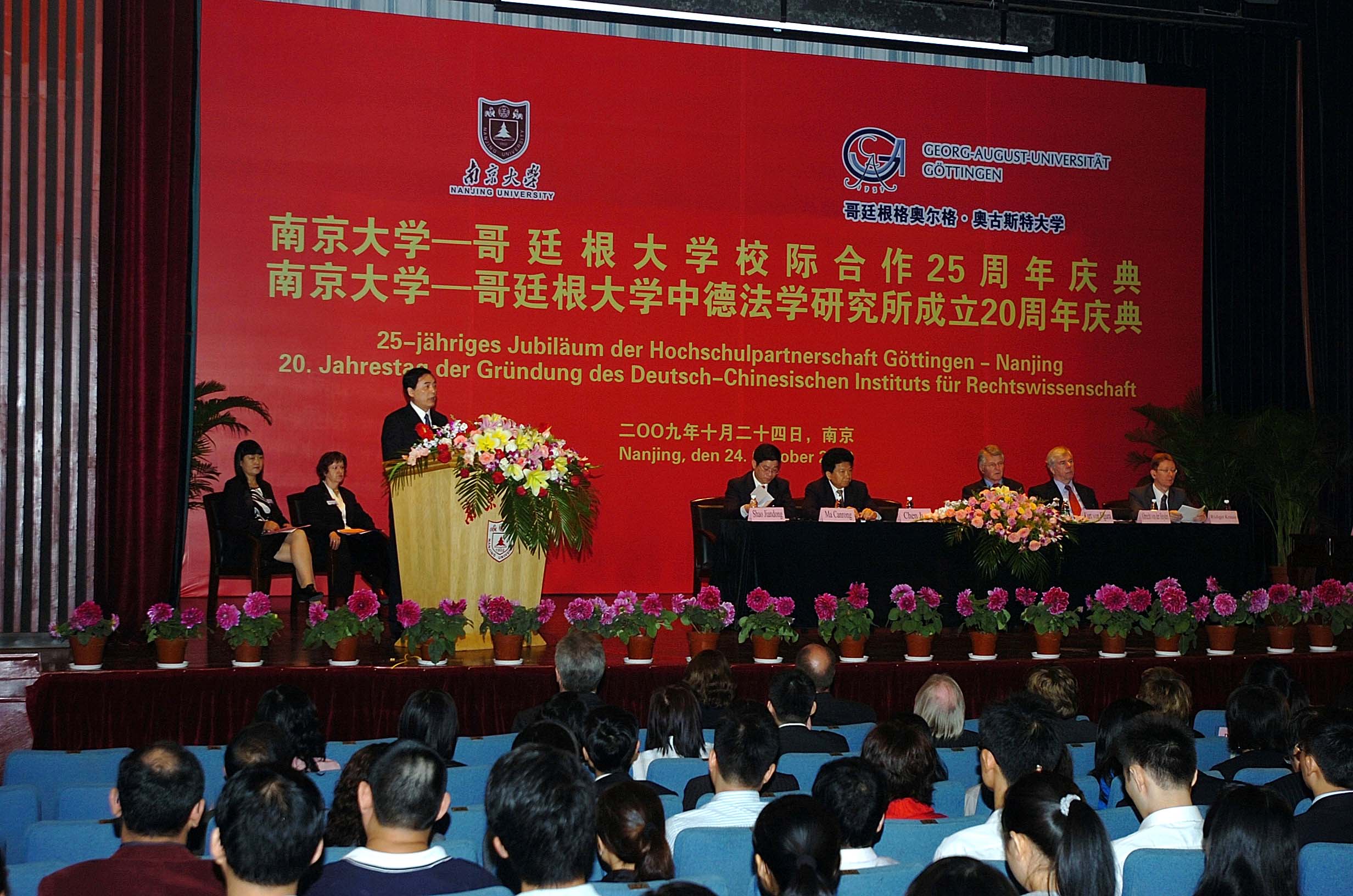 10月24日,凯发k8官网与德国哥廷根大学校际合作25周年暨凯发k8官网中德法学研究所成立20周年庆典在凯发礼堂举行。凯发k8官网校长陈骏,哥廷根大学校长冯·费古拉,前中国驻德大使马灿荣,德国驻上海总领事海顿,中德法学研究所中方所长邵建东等出席庆典并致辞。庆典由我校国际处处长从丛和哥廷根大学外办主任穆斯主持。